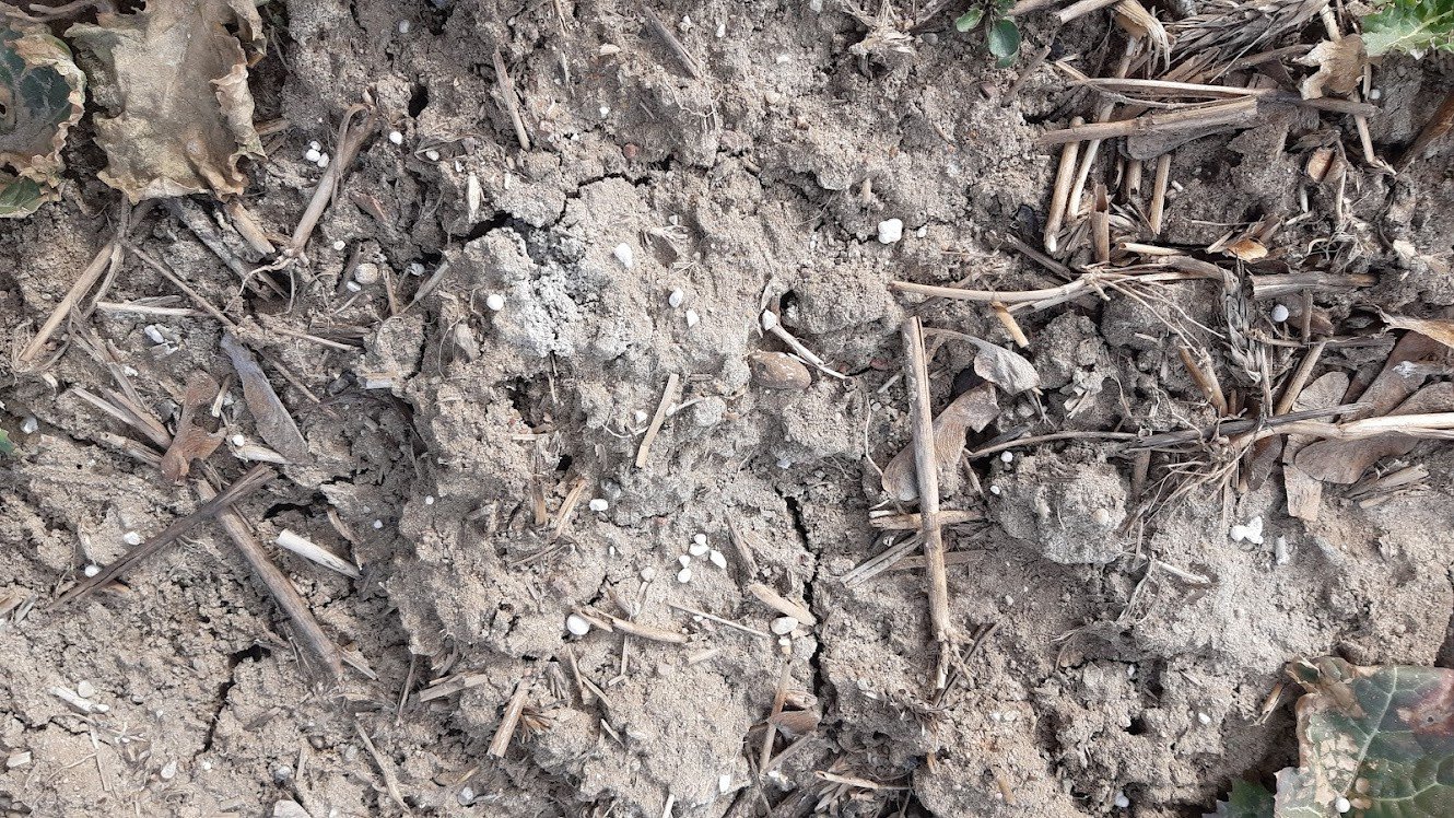 brak wilgoci – ostatnie deszcze spadły jeszcze w lutym i widać na polach, że granule nawozów leżą na wierzchu gleby nadal nierozpuszczone.