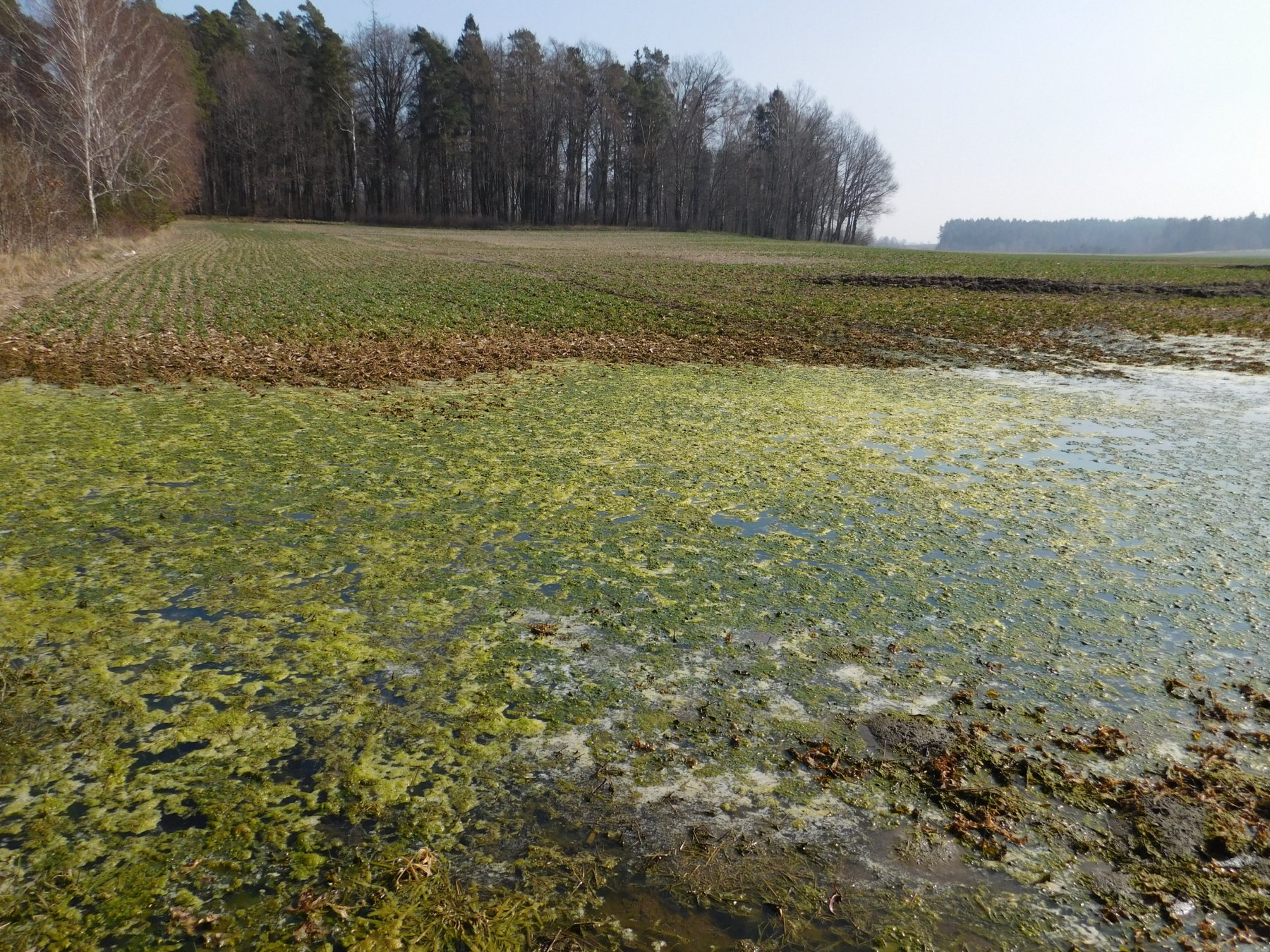 Jak powinna wyglądać wegetacja widać po zastoiskach wody. Ciemna ziemia pod wodą pochłania energię słońca, a woda działa jak akumulator ciepła. Jeśli dodamy do tego zastosowane nawozy azotowe (+ S, + Mg) to widać jak błyskawicznie rozwijające się glony powoli zmieniają kałuże w „zielone łąki”.