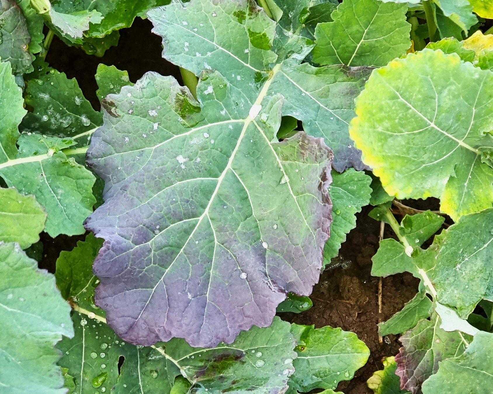 Zdj.4.Fioletowe przebarwienia mogą świadczyć o braku azotu
