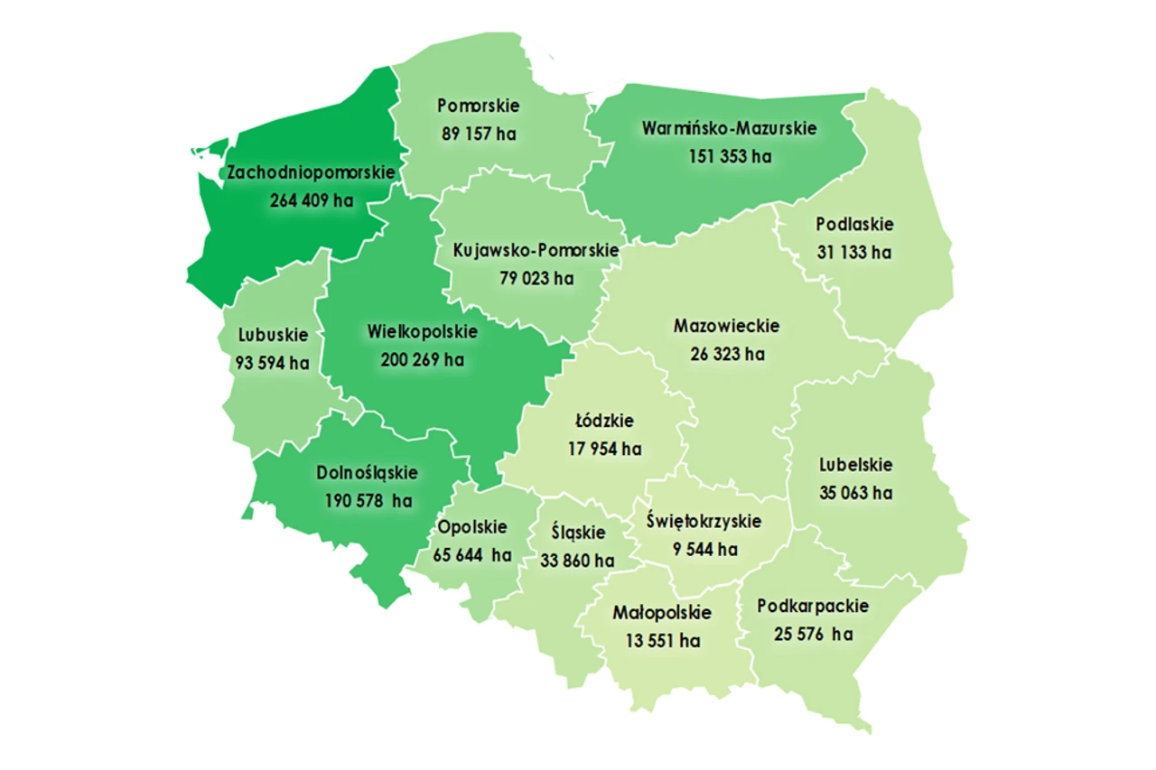 Według danych na 30 czerwca 2025 r., do rozdysponowania pozostało 146,5 tys. ha gruntów – to najniższy poziom w historii gospodarowania ZWRSP. Najwięcej dostępnych powierzchni znajduje się w oddziałach KOWR we Wrocławiu, Szczecinie, Olsztynie, Gorzowie Wlkp. i Poznaniu – łącznie ponad 79,5 tys. ha (czyli 54% całej dostępnej powierzchni).