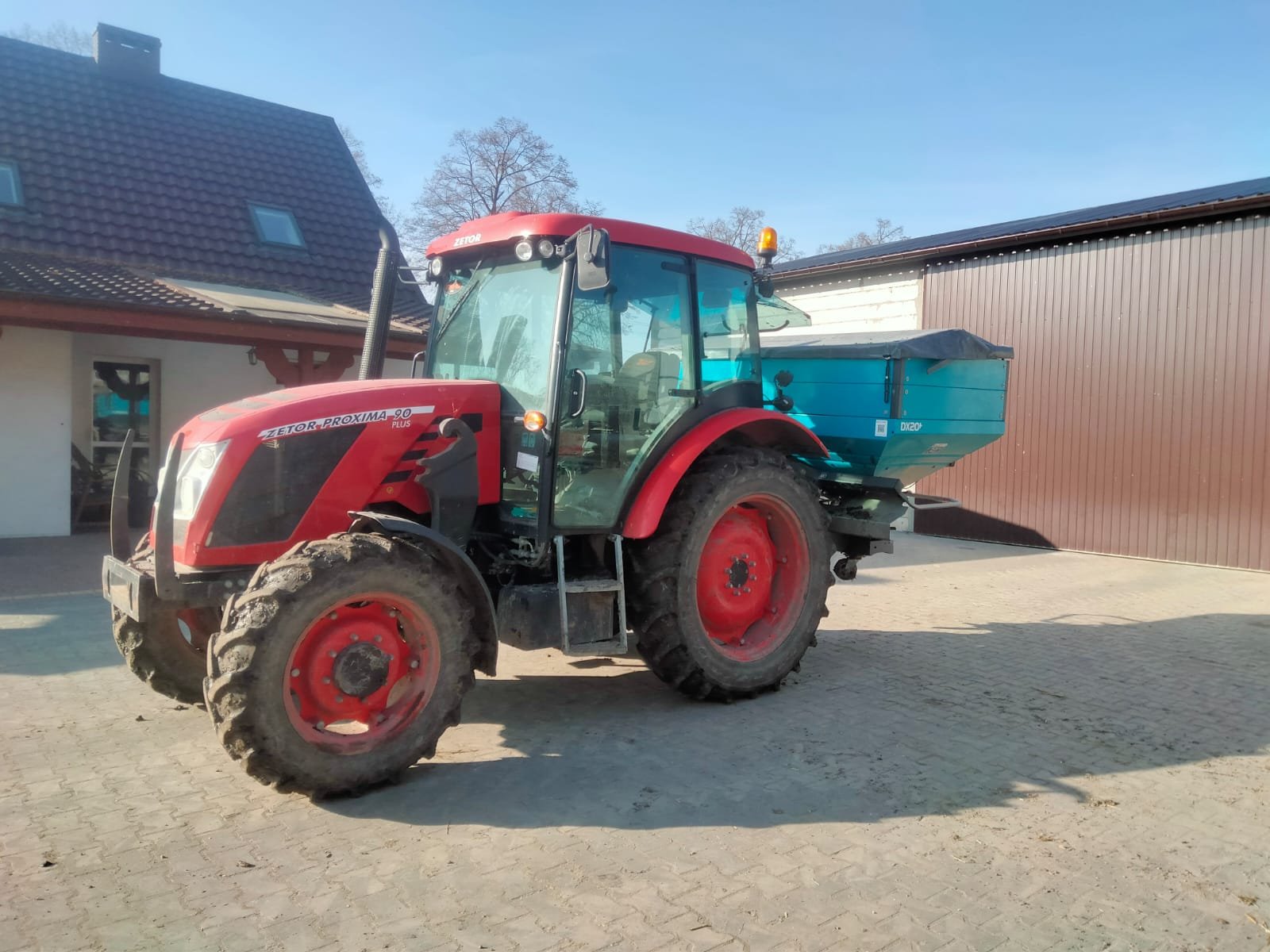 Ciągnik rolniczy z rozsiewaczem do nawozów (M. Kozanecki).