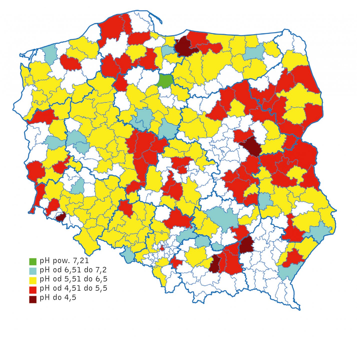 Odczyn polskich gleb na podstawie badań programu "Grunt to Wiedza". Wyniki badań odczynu polskich gleb, przeprowadzane zarówno przez Grupę Azoty i przez IUNG – PIB w Puławach pokazują, że większość polskich gleb powinna być regularnie wapnowana. Natychmiastowego nawożenia wapniowego do podniesienia odczynu wymaga 40% wszystkich użytków rolnych.