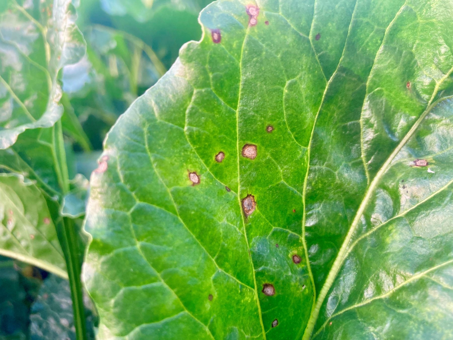 W sezonie burakom zagraża nie tylko chwościk. Inny ważny grzyb to Ramularia beticola wywołujący brunatną plamistość liści. Objawy choroby często są mylone z chwościkiem. W przypadku brunatnej plamistości na liściach pojawiają się brunatnoszare plamy o średnicy 4-7 mm. Porażona część liści zasycha i może się wykruszać, zmniejsza się w ten sposób powierzchnia asymilacyjna. Pierwsze objawy choroby obserwuje się na najstarszych liściach.