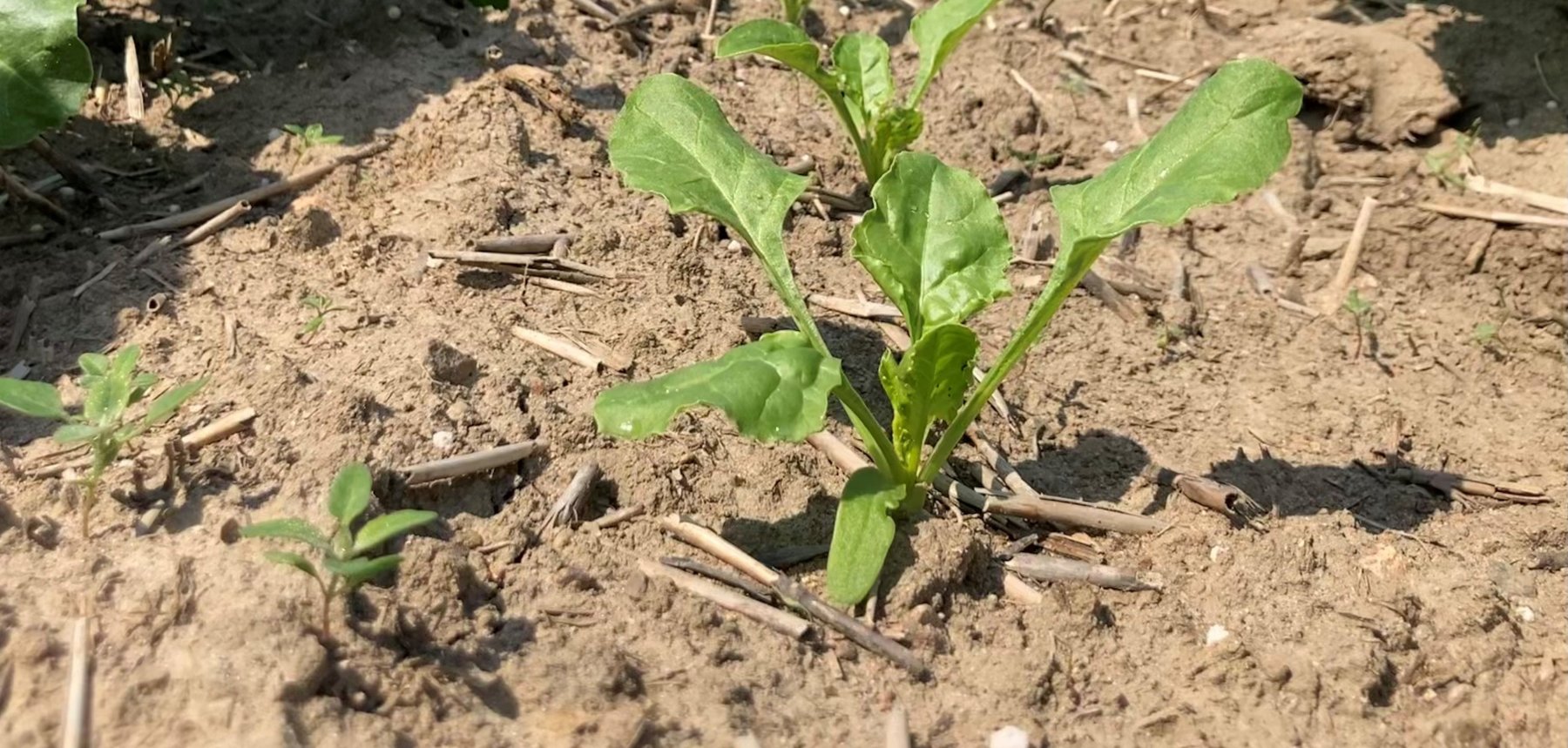 samosiewy rzepaku, które, ze względu na dużo szybszy niż buraka wzrost, w krótkim czasie zagłuszają roślinę uprawną.