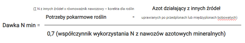 Dawkę azotu w nawozach mineralnych (Dawka Nmin) obliczamy wg wzoru: