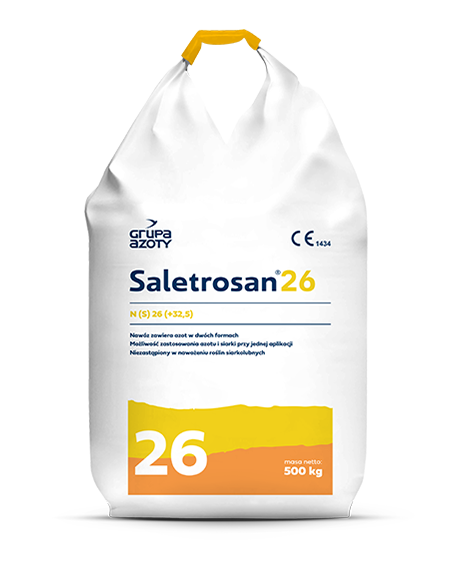 Saletrosan® 26 zawiera w swoim składzie 26% azotu w tym w formie amonowej wolniej działającej, stymulującej rozwój korzeni roślin – 19 % i saletrzanej działającej szybko – 7%, a także 13% siarki (S) tj. 32,5% w przeliczeniu na trójtlenek siarki (SO3), rozpuszczalnej w wodzie, w formie siarczanowej. Jest szczególnie polecany do nawożenia roślin wymagających większych ilości siarki, jak rośliny kapustowate, w tym szczególnie rzepak, a także kapusta, kalarepa, gorczyca. Jest idealnym nawozem dla roślin, które obok dobrego zaopatrzenia w azot, potrzebują również szybko działającej siarki siarczanowej. Pozwala utrzymać dobre zaopatrzenie roślin w azot, a dzięki obecności siarki efektywnie go wykorzystać. Kluczem do sukcesu w pogłównym stosowaniu nawozu Saletrosan® 26 jest wilgotna gleba, która umożliwia rozpuszczenie nawozu i jego przemieszczenie do strefy korzeniowej.